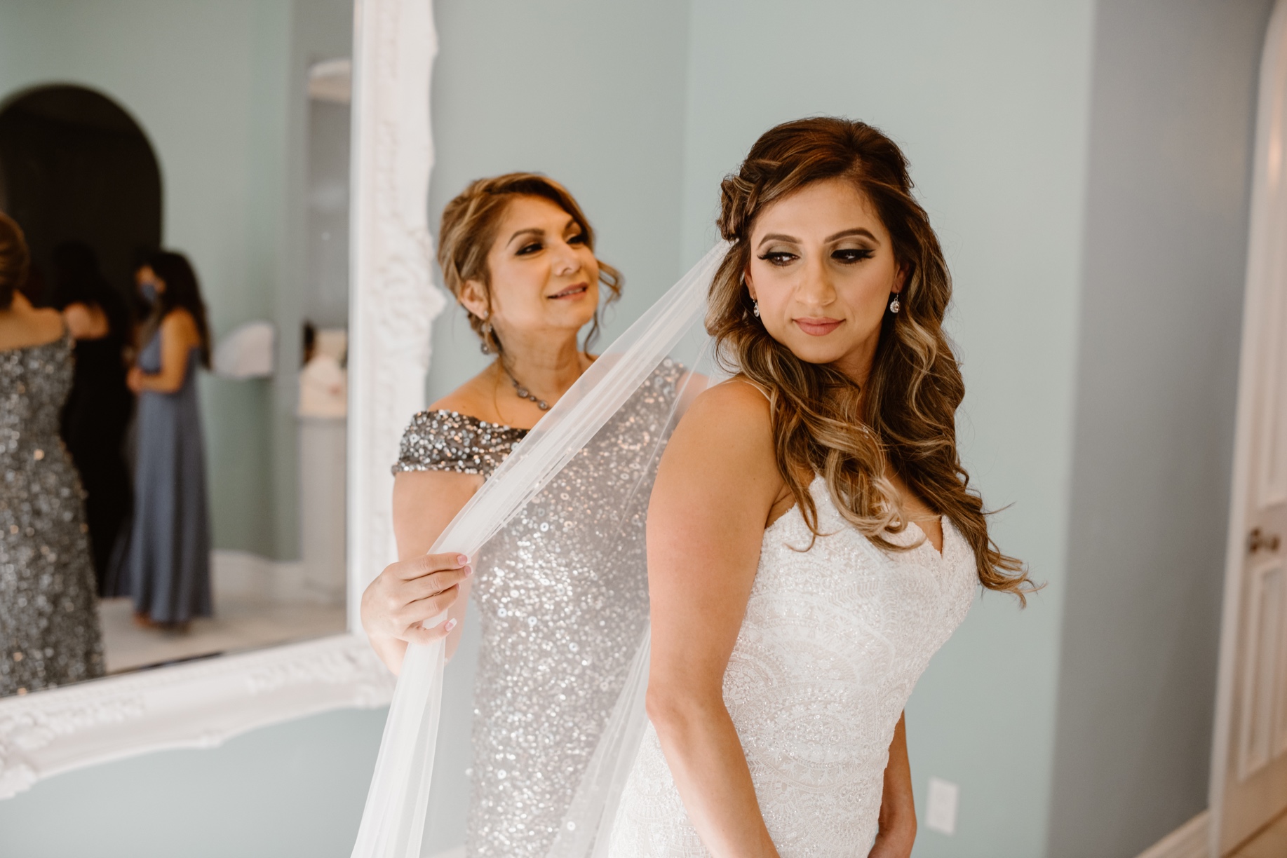 When all were seated under the hot summer sun, their ceremony began. As their wedding party started down the aisle, it was clear that Melissa & Andrew were loved by so many. Each pair walking down smiled proudly at Andrew as they waited for Melissa to make her appearance. Her entrance was nothing short of pure MAGIC. The song changed, the double doors swung open, and as she stepped out, this small gust of wind came which made her veil move with it and it was just so so beautiful.